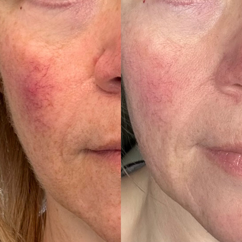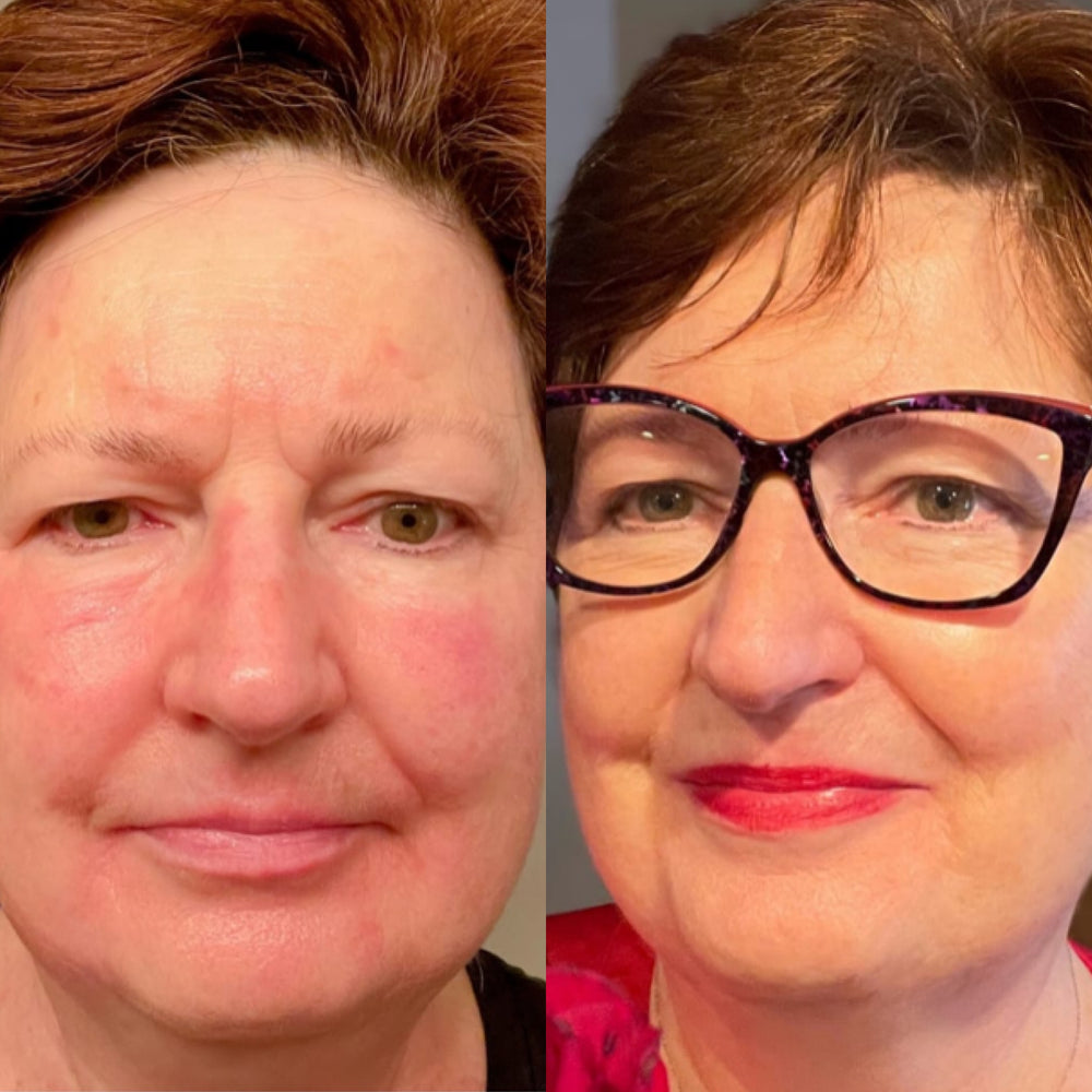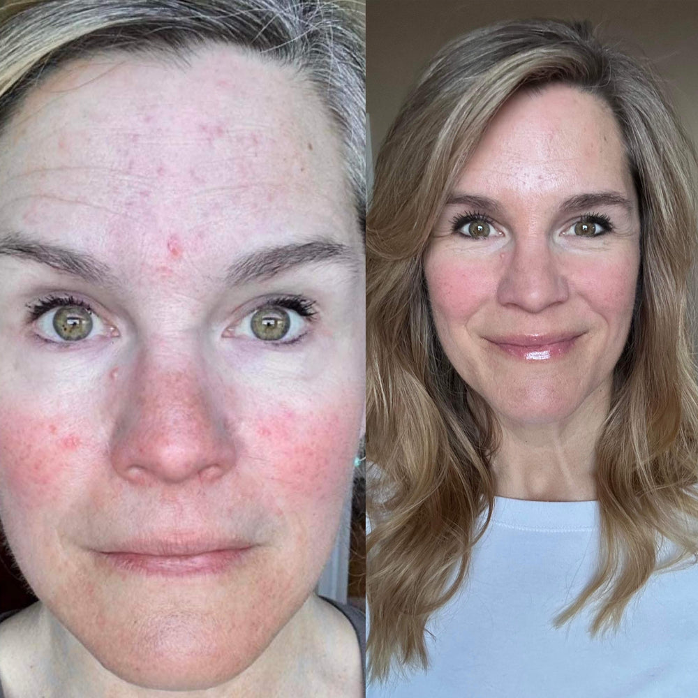 I have literally never written in to a company about a product before, but I needed to share how amazing your cream has been for me! This morning, for the first time in my life (I’m 40 and have been wearing foundation every day of my life since age 11), I actually forgot to put my foundation on. My skin looked so good, I thought it was already on and didn’t realize I was barefaced until I noticed my blush was going on differently than usual. I have been struggling with an absolutely brutal perioral dermatitis flare for over a year and have spent thousands on skincare products, antibiotics, and treatments at the derm clinic… and this product of yours just magically worked to calm it down immediately. Three weeks on, I have the best skin of my life. THANK YOU SO MUCH FOR MAKING THIS!! Attaching a pic below of my face this morning, without a single flaky, patchy spot!!