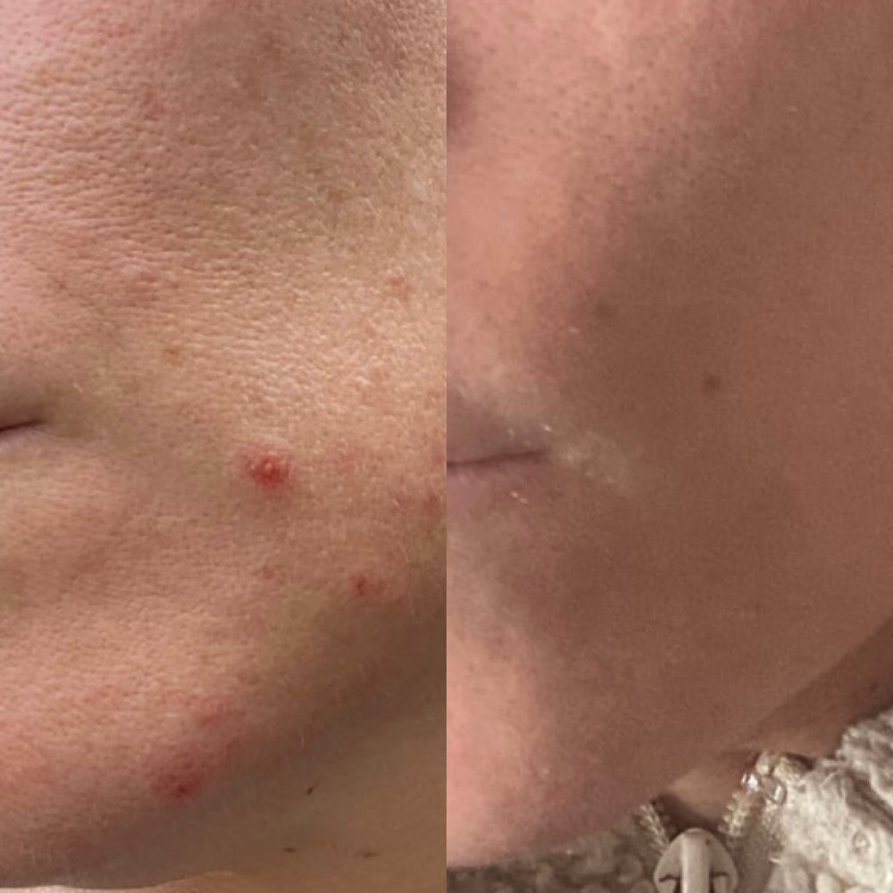 I’ve only been using this product for a little over 10 days, and already I am beyond hooked. I suffer with eczema and have for the majority of my life. Prior to using this product, I’d been experiencing so many flare-ups, and once they cleared, nothing I could do would get rid of the redness and dry flaking on my face, which, as a woman, is extremely frustrating. Anyone who has suffered with dry, flaky, irritated skin knows it can’t just be covered up by makeup, so I always felt self-conscious, and feeling less than pretty is an understatement. Although I’m still experiencing some minor dryness on my face, I can get through most of the day without looking like a dried-up prune, and instead just have very minimal dryness. I think the longer I use this, I will continue to see better and better results. I am beyond thankful to have found this. I’m also planning to have my 16-year-old son try this for his acne. I’ll be ordering for both of us next time. Customer for life — and to think this amazing product comes right out of my own town 🩷